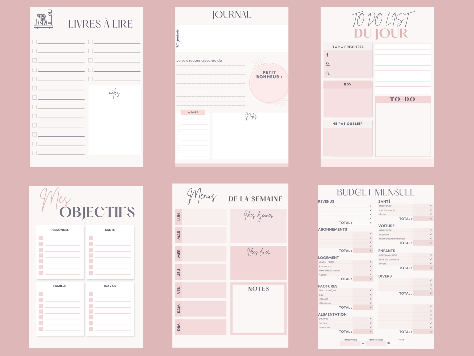 J’ai créé ces fichiers à imprimer pour t’aider à organiser ta vie bien remplie !